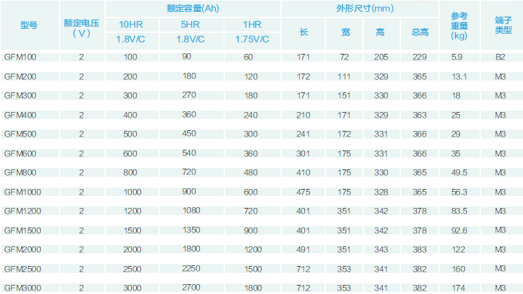在20℃環(huán)境下,F(xiàn)M系列小型密封電池浮充壽命可達3~5年,F(xiàn)M固定型密封電池浮充壽命可達8~10年,F(xiàn)ML系列電池浮充壽命可達10年,F(xiàn)MH系列電池浮充壽命可達10年,GFM系列、太陽能深循環(huán)系列電池浮充壽命可達15年,GFMJ系列電池浮充壽命可達18年。